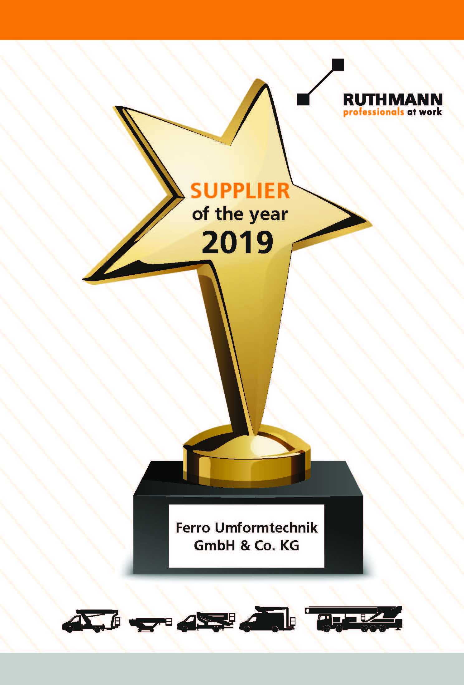 Im Jahr 2019 wurde Ferro von unserem Kunden Ruthmann als Supplier of the Year ausgezeichnet – für besondere Leistungen in Qualität, Liefertreue und Zusammenarbeit.